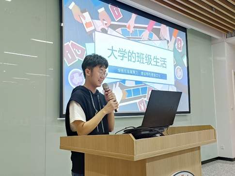 此外,往届优秀学长学姐进行了经验分享。舒涛学长以“走一步,看一步;走一步,走好一步”为主题向同学们分享了大学四年的在学习、文体活动、科创方面的经历。常华壦学长以““社恐少年”在华科的成长故事”为主题分享了自己从刚进大一的懵懂无知,到大三找到自己未来的方向并坚定向前走的过程,鼓励同学们保持对生活的热爱,希望大家“迎光而去,不负所望”。现场同学认真聆听了各位学长学姐的分享,纷纷表示更加有活力、有信心面对未来的大学生活。