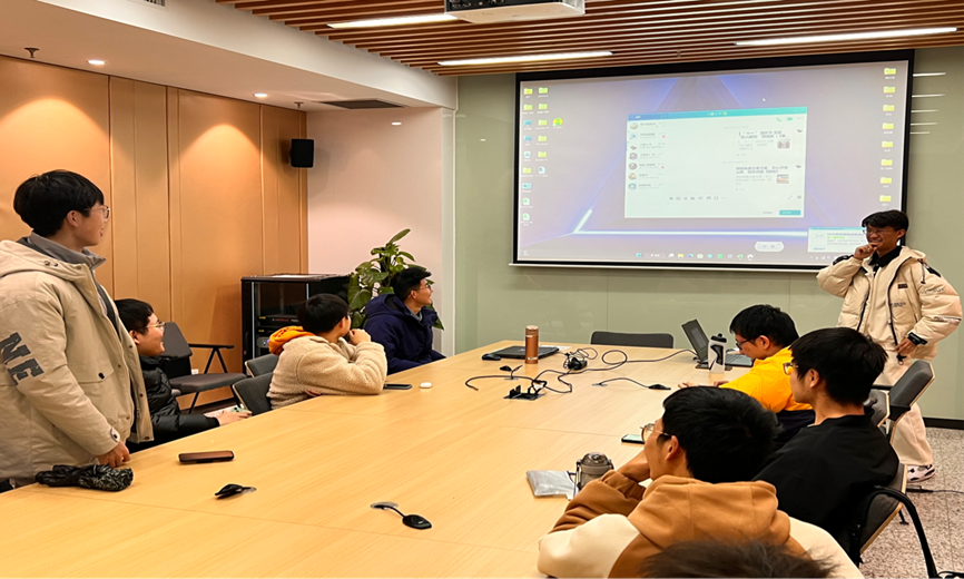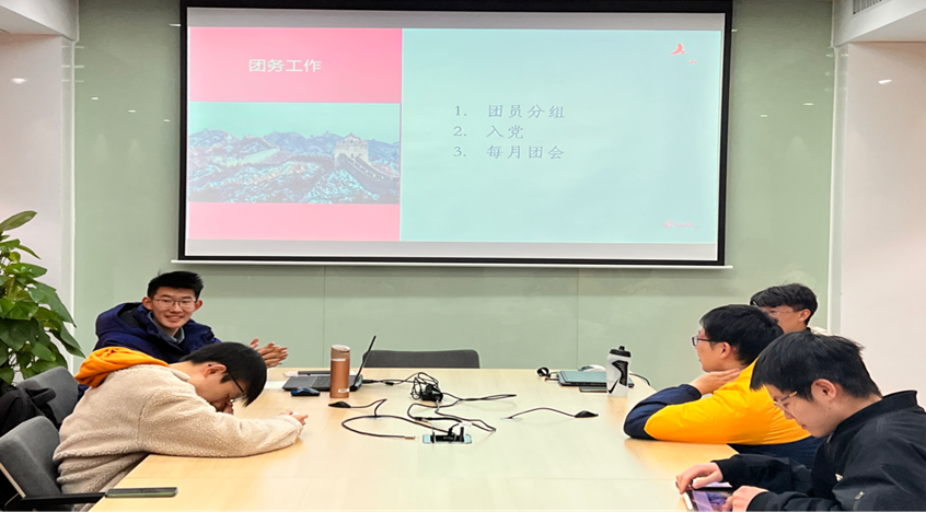 接着,团支书臧科航同学组织开展二月特色团会,考虑到大家都是从原班转到中法班,臧科航同学首先向大家介绍了班级团务工作和团员内部分组情况,讲解了为来班级每次团会的开展流程。然后,他为同学们准备了提问的时间,回答了同学们关于入党过程、特色团日的开展、中法班团支部建立等问题。解答完同学们的问题后,臧科航正式步入团会主题:学习领会习近平主席的新年讲话精神。在提到爱国时,吴凯戈同学真情详细地讲述了他自己的感慨。
