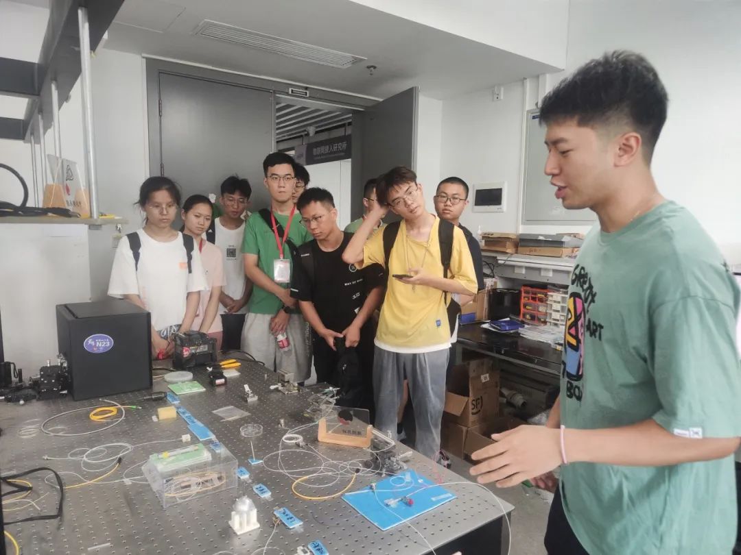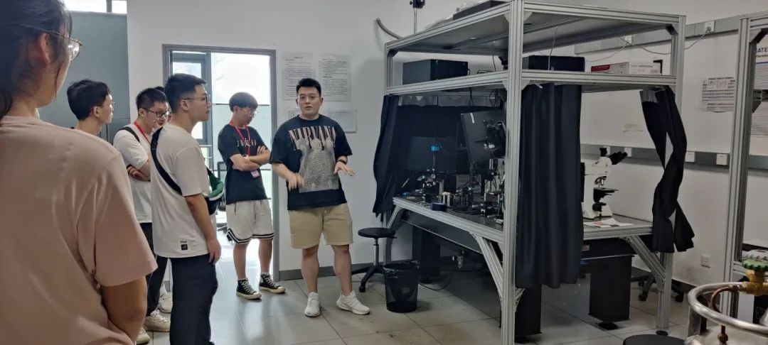 7月3日上午,开营仪式之后,在研究生会志愿者的带领下,营员们穿梭于光电大楼,参观各个研究方向不同课题组的实验室。在老师学长的讲解下,营员们不仅认识了各色各样的实验仪器,还对各个课题组的研究方向有了一定的了解。