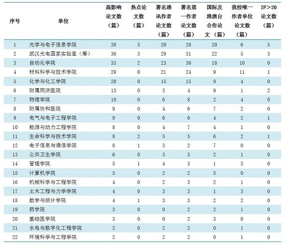 我校218篇高影响论文作者来自我校22个单位(见下图),其中伟德国际唯一官网入口发表高影响论文数量最多,署名通讯作者和第一作者的论文篇数最多的单位是武汉光电国家实验室(筹),国际及港澳台合作论文篇数最多的单位是武汉光电国家实验室(筹),以我校为唯一作者单位的论文篇数最多的是材料科学与技术学院;期刊影响因子大于20的论文篇数最多的单位是伟德国际唯一官网入口。