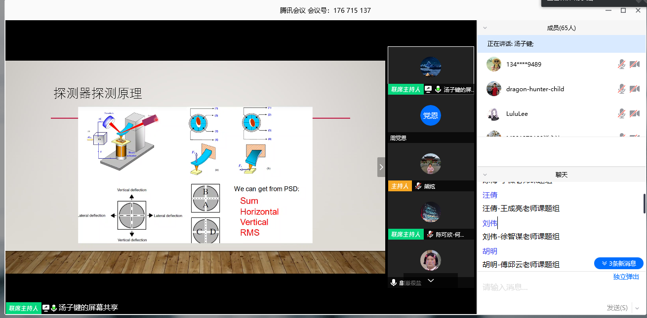 经过前期的准备和勇于尝试的心态,平台于4月6日开始了第一期原子力显微镜的云培训,由汤子健硕士生主讲,总计有60位老师同学参加,这给平台以极大的鼓舞。