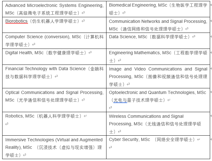 2. 布里斯托大学硕士专业方向(具体以学校官网公布信息为准)