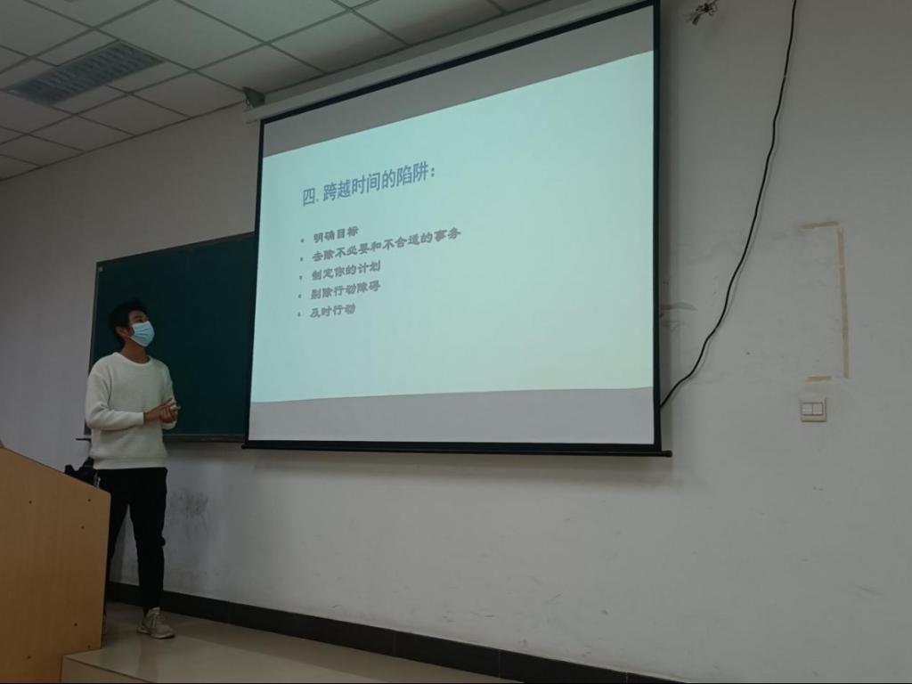 在了解有关时间管理的知识之后,徐敬庭将时间管理的陷阱向同学们一一陈述,随后从各个方面逐一展开。在心理委员的仔细指导下,同学们对时间管理有了更进一步的认识,对在时间管理方面的问题也找到了对应的解决方案,更明确地设定目标,更合理地判断事务的优先级,更努力地避免拖延对自己的影响,学会了如何跨越时间管理的陷阱。最重要的是,同学们通过心理委员的讲授和同学间相互讨论获得了更多时间管理的方法和策略。