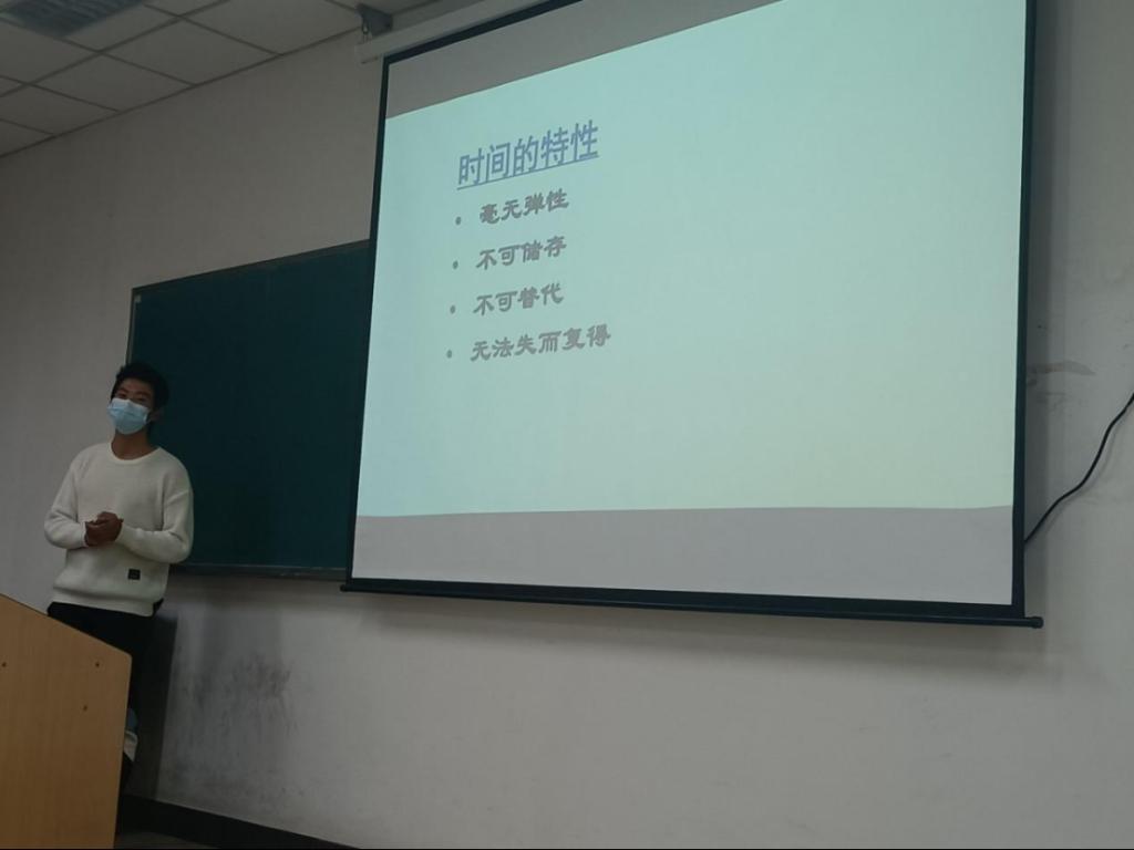 本次活动由心理委员徐敬庭主持。活动开始,徐敬庭带领全班同学逐步认识时间管理的重要性,深入了解时间的特性,学习如何高效地管理时间。同学们也都积极参与了讨论,交流自己时间管理上的经验,明确了自己在时间管理上的一些误区。