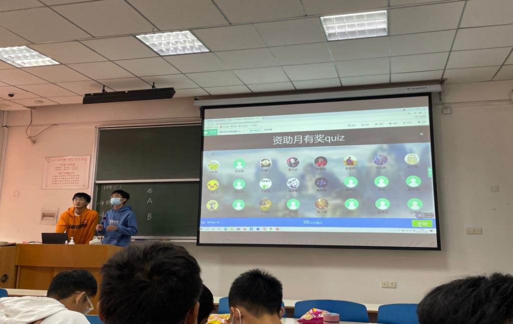 下面就是本次资助月活动最有趣味的环节——有奖quiz!借助微助教天天快答这一新颖有趣的形式,同学们在18道小问题中回顾两个资委今天所讲解的重要内容。题目中有不少情境类题目,也不乏资委们专门设下的坑点。答完一道讲解一道,两个班的同学们在轻松愉快的氛围下收获颇丰。整个quiz结束后,排名前十的同学还会收到一份由资委们精心准备的纪念品。