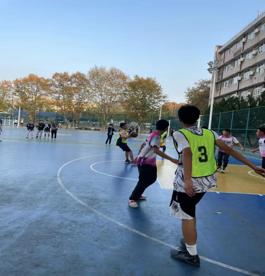 为提升同学们的身体素质,增强同学们的球类竞技水平,在经过大量仔细、全面的筹备后,光电学院2021届“篮球赛新生杯”在11月中旬拉开帷幕。11月18日下午,2113、2114、2115班联合球队(绿色队服)与2112班(粉色队服)进行交锋。