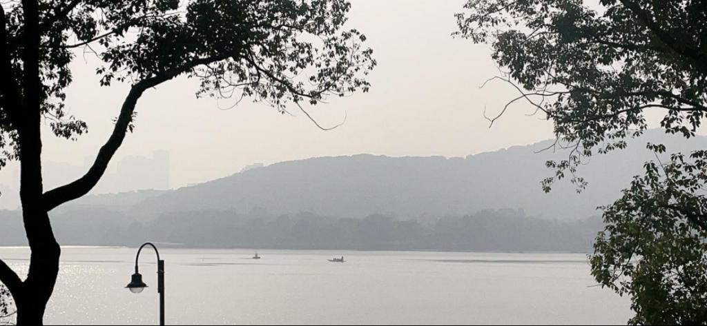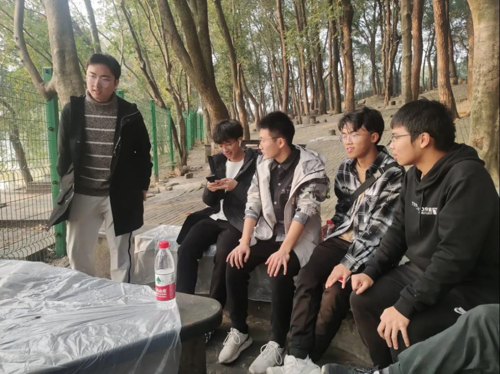 活动伊始,同学们在韵苑食堂门前集合。韩一天清点人数并作简要说明后,同学们或骑行或步行,结伴踏上出游之路。行至公园,惟见道旁湖光山色,风景如画。远望苍山如黛,浮光跃金;近观木叶萧萧,层林掩映。同学们被秀丽的景色深深吸引,纷纷停车驻足,用相机或手机记录下眼前的初冬湖山图。
