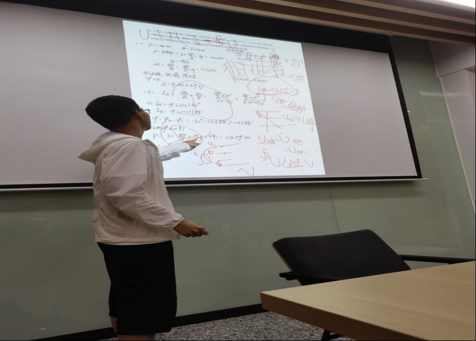 首先,赵森翀同学向大家讲解了各章节的代表性例题,带领大家复习了常用的几种解题思路与方法,并解答了同学们的疑惑,以便同学们巩固知识体系。同时,他还与同学们积极互动,邀请李诺言同学上台讲解自己对对称三相电路的理解。