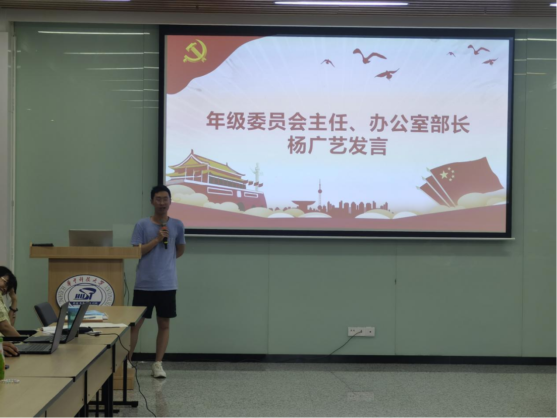 为了搭建同学们自我管理、自我服务的平台,光电学院2021级成立年级委员会,统筹开展年级学风建设、文化体育等各方面工作。首先,由朱教藤宣布年级委员会成立,并介绍年纪委员会的基本构架及其功能。随后由各部门部长对各部门工作职能以及未来展望进行发言。21级年级委员会的建立可以更好地服务于同学,让同学们学得放心、住得安心、玩得开心。