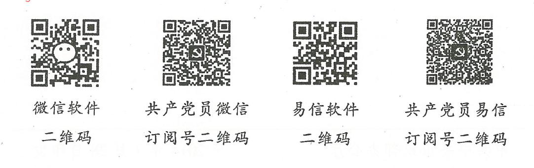 3、扫描下列二维码,可直接下载安装微信、易信软件,订阅共产党员微信、易信。