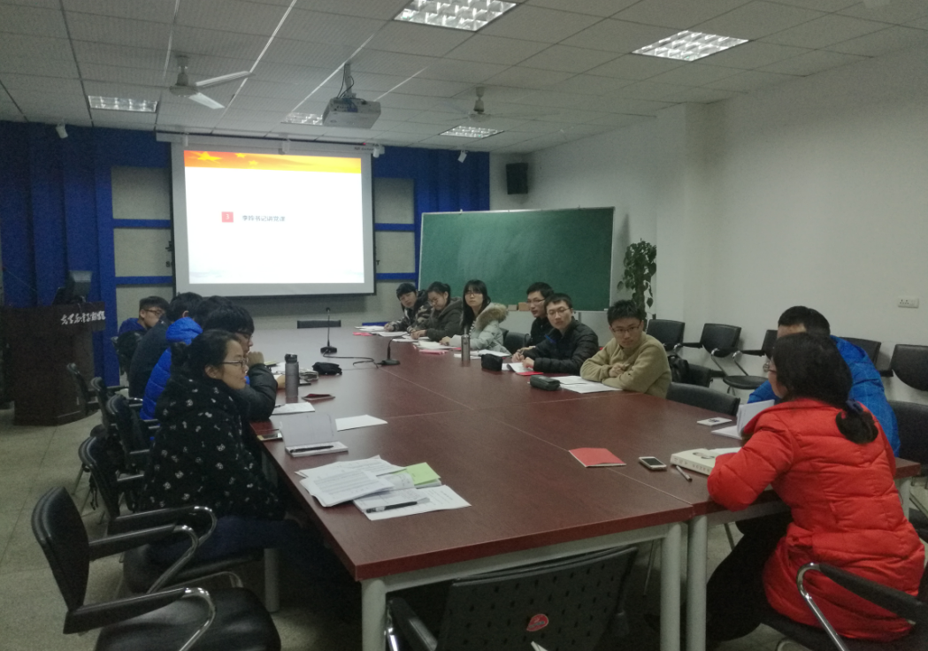 首先支部书记柯举总结了上个月的工作进展,报告了支部本学期特色党日活动的开展情况和最终的答辩活动。紧接着李玲副书记结合《习近平谈治国理政》一书从“中国梦”的具体内涵、“两个一百年”、“四有青年”、全面深化改革、提升文化软实力等方面给全体支部成员讲了一堂生动的党课,她强调了在座的各位支部成员将会成为实现我国“两个一百年”奋斗目标的中坚力量。同时,李书记也强调了提升自身政治素养的必要性,要有“本领恐慌”意识、要经常开展批评和自我批评。会议中,她还和支部成员一起回顾了十八大以来党提出的各项方针政策和要求,例如:“四个自信”、“三严三实”、“四风”和 “四讲四有”等。