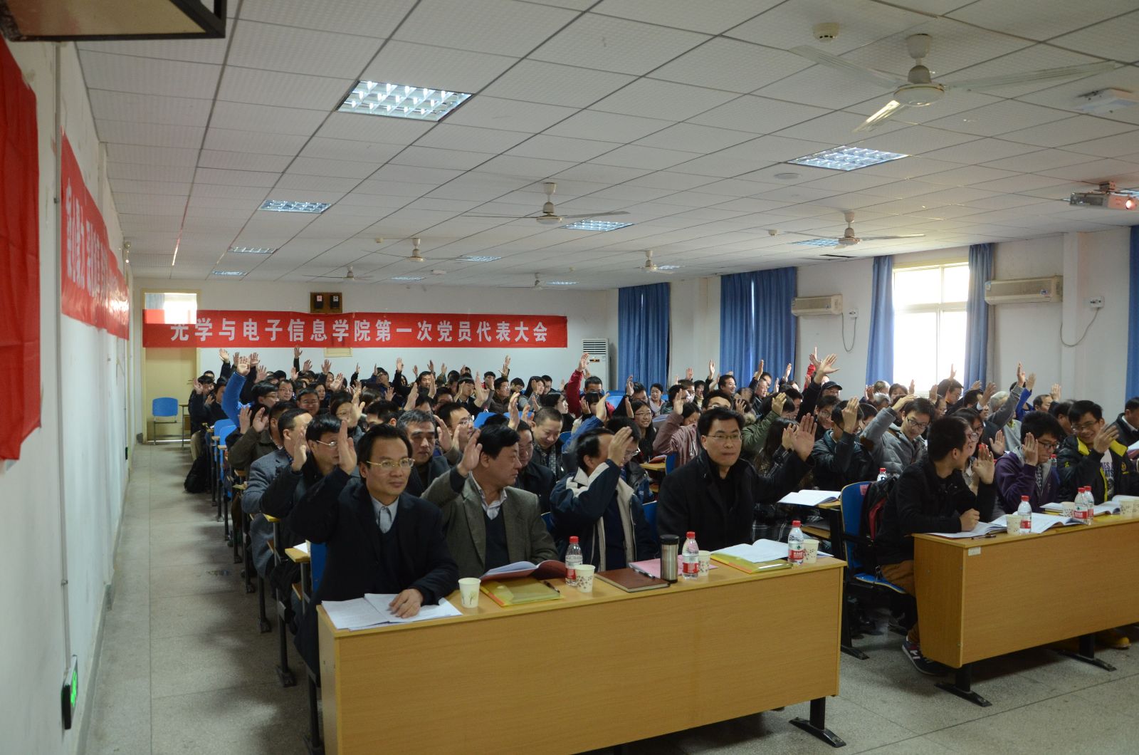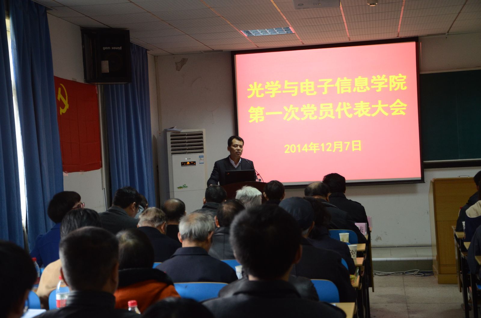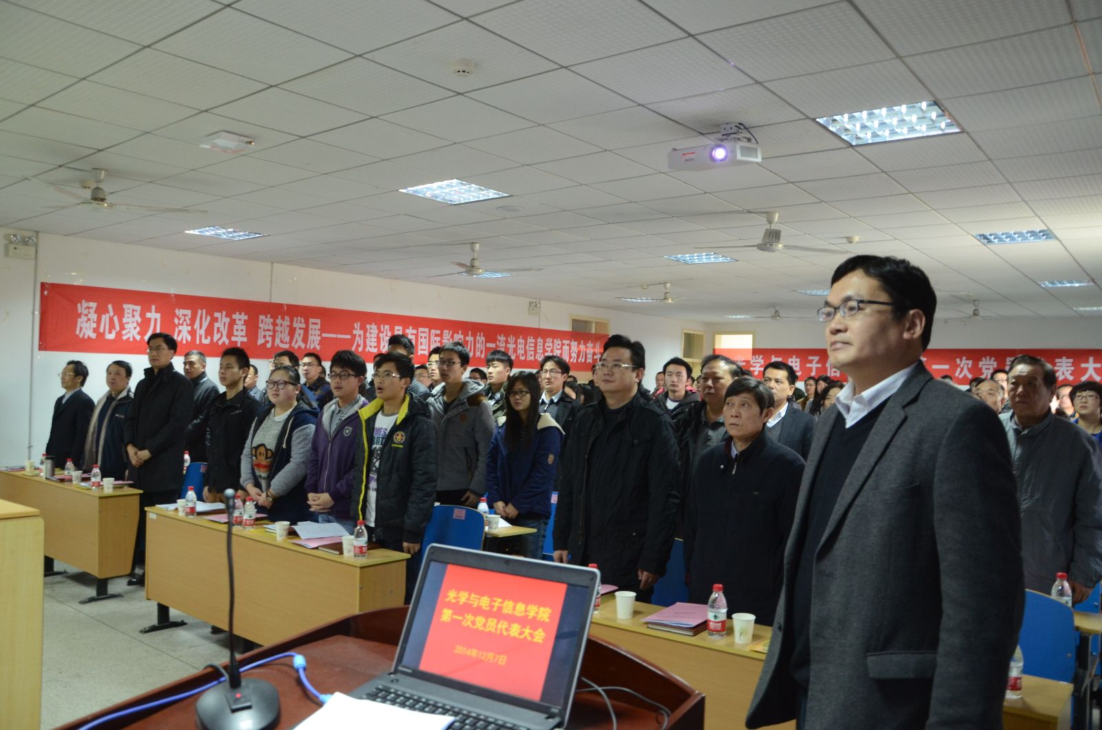 会议在庄重的国歌声中拉开序幕。刘继文同志代表学院党委作了题为《凝心聚力 深化改革 跨越发展——为建设具有国际影响力的一流光电信息学院而努力奋斗》的工作报告。