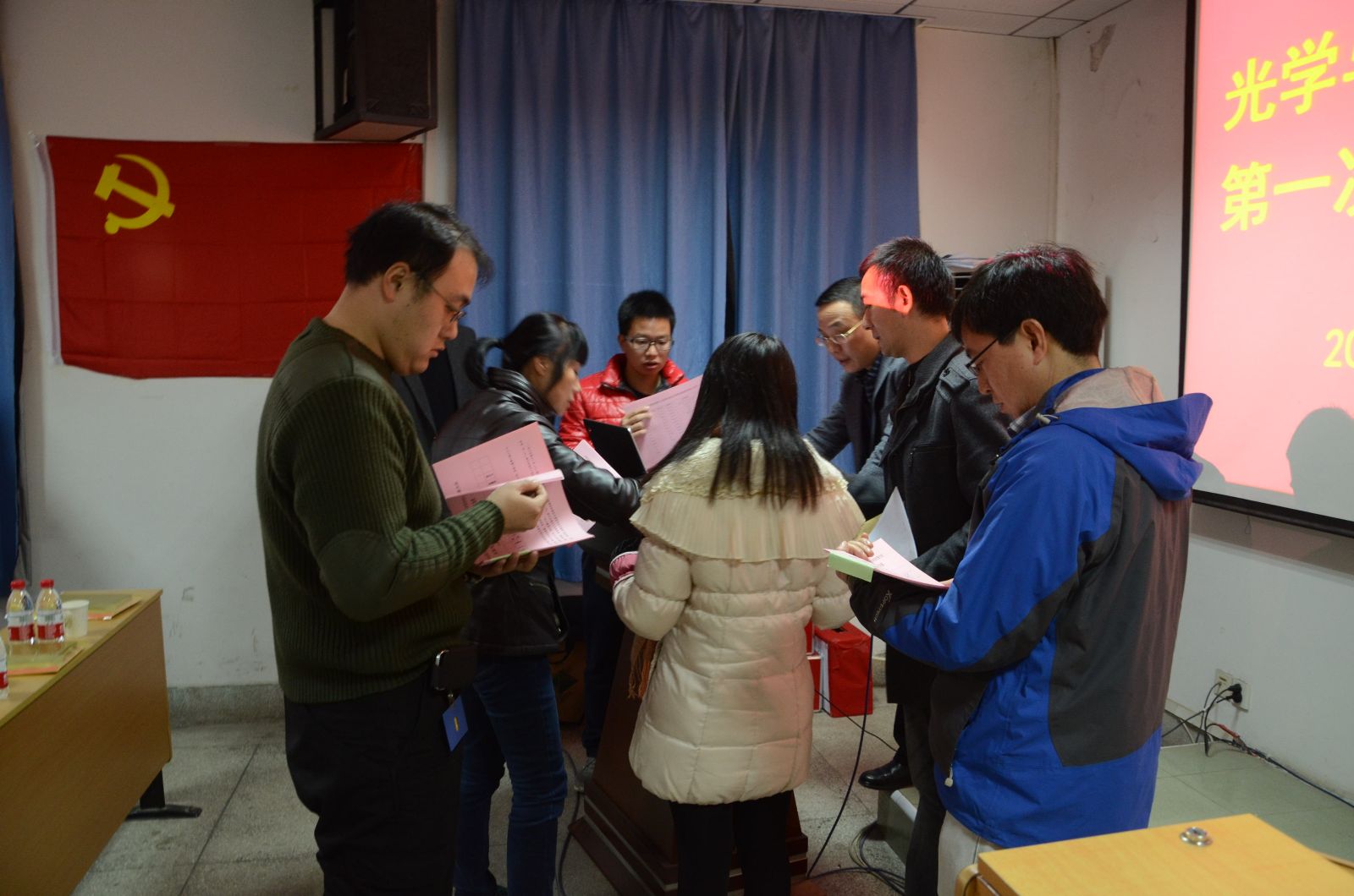 随后,光电信息学院召开了第一届党委会第一次会议。会上,11名党委委员投票选举产生了新一届学院党委书记、副书记。会议学习传达了校党委、校纪委有关会议精神。与会委员讨论确定了党委委员工作分工,学习了学院党委会职责及议事规则,研究布置了年终学院党委的几项重要工作,布置了党风廉政建设的有关工作。