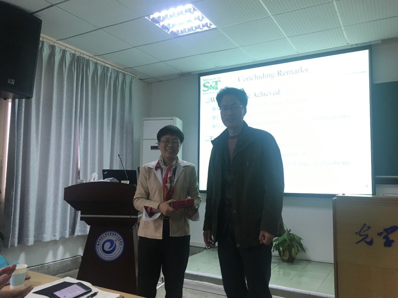 报告结束之后,郑教授就相关问题与在场师生进行了讨论,并对师生提出的问题进行了细致耐心地分析及解答。会后吕文中副院长代表光电学院为郑教授赠送了光电信息大讲堂纪念品。报告结束后郑教授参观了下一代互联网接入系统国家工程实验室。