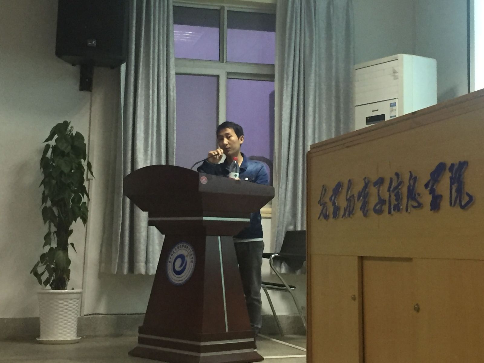 5月11日晚上7点,由光电信息国家试点学院主办、学院大学生公共项目实验室(以下简称实验室)承办的大型系列专题讲座“光电学子创新、创业大讲堂”系列讲座第八讲在南五楼613室拉开了帷幕。