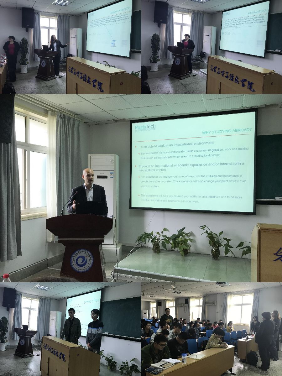2017年4月7日下午,法国巴黎高科联盟中法“9+9”项目招生宣讲会在伟德国际唯一官网入口南五楼613举行。来自高科联盟的三位负责招生的教授Télécom ParisTech巴黎高科国立高等电信学校国际关系处副主任Catherine VAZZA 女士,ENSTA ParsTech巴黎高科高等先进技术学校国际关系处副主任Cécile VIGOUROUX,巴黎高科驻华办公室主任 Sylvain Ferrari 先生莅临光电信息学院,详细介绍了联盟的组成、各成员高校的优势学科、招生事宜以及中法“9+9”留学项目申请方式。他们还特别提到了我院今年刚刚和巴黎高等光学学院(IGOS) 签署的”3+3“ 协议,希望有2015级的同学感兴趣。