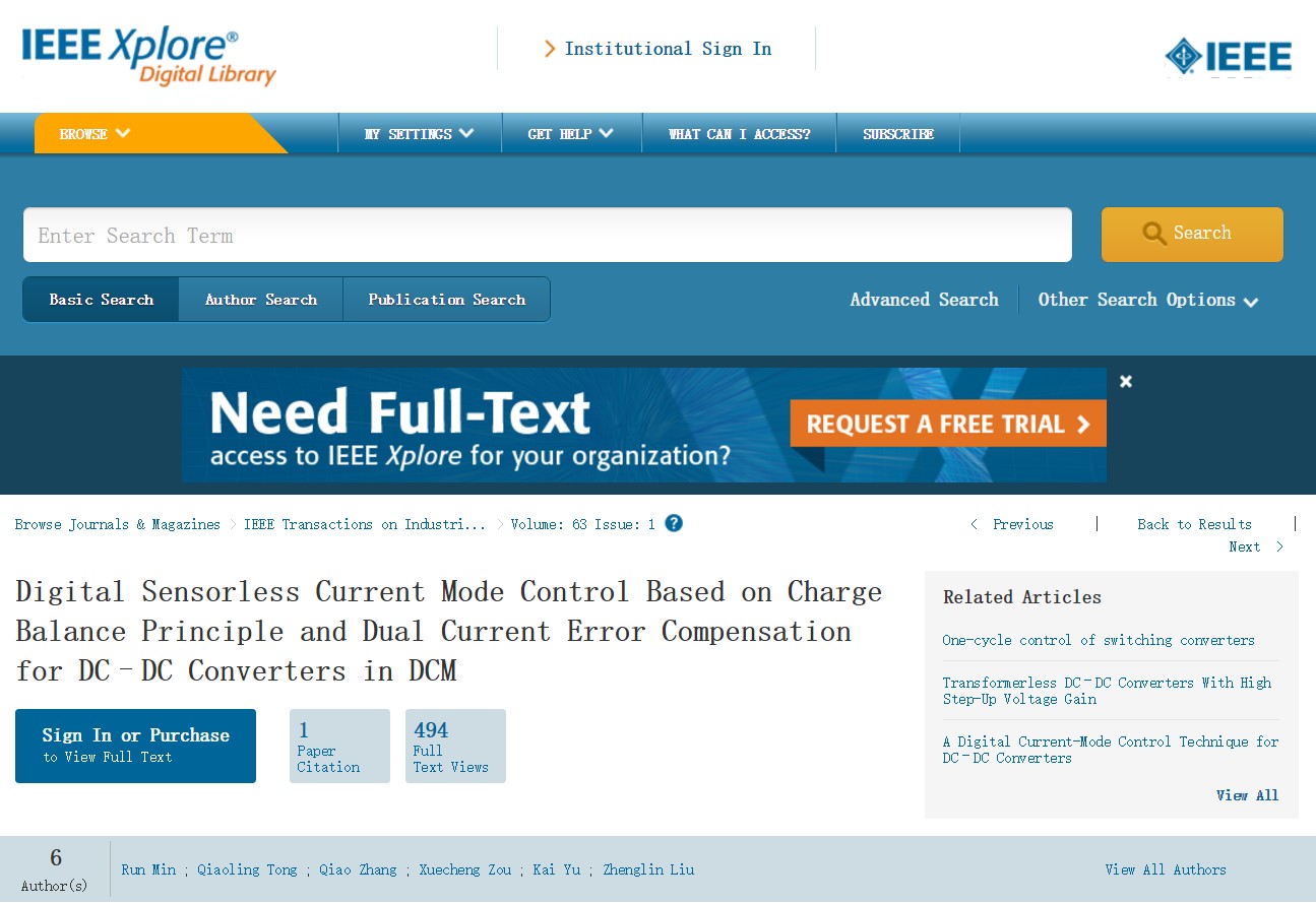为了解决开关功率变换器中寄生参数导致的控制性能下降问题,华中科技大学光电信息学院的青年教师闵闰对变换器的电感电流模型进行了改进,继而提出了一种适用于数字电荷平衡控制的双电流误差补偿策略。通过消除观测电流误差和控制电流误差,提升了变换器50%的动态响应速度,并消除了输出电压稳态误差。相关研究成果已发表在工程类顶级期刊IEEE Transactions on Industrial Electronics, 2016, 63(1): 155-166,影响因子6.4。