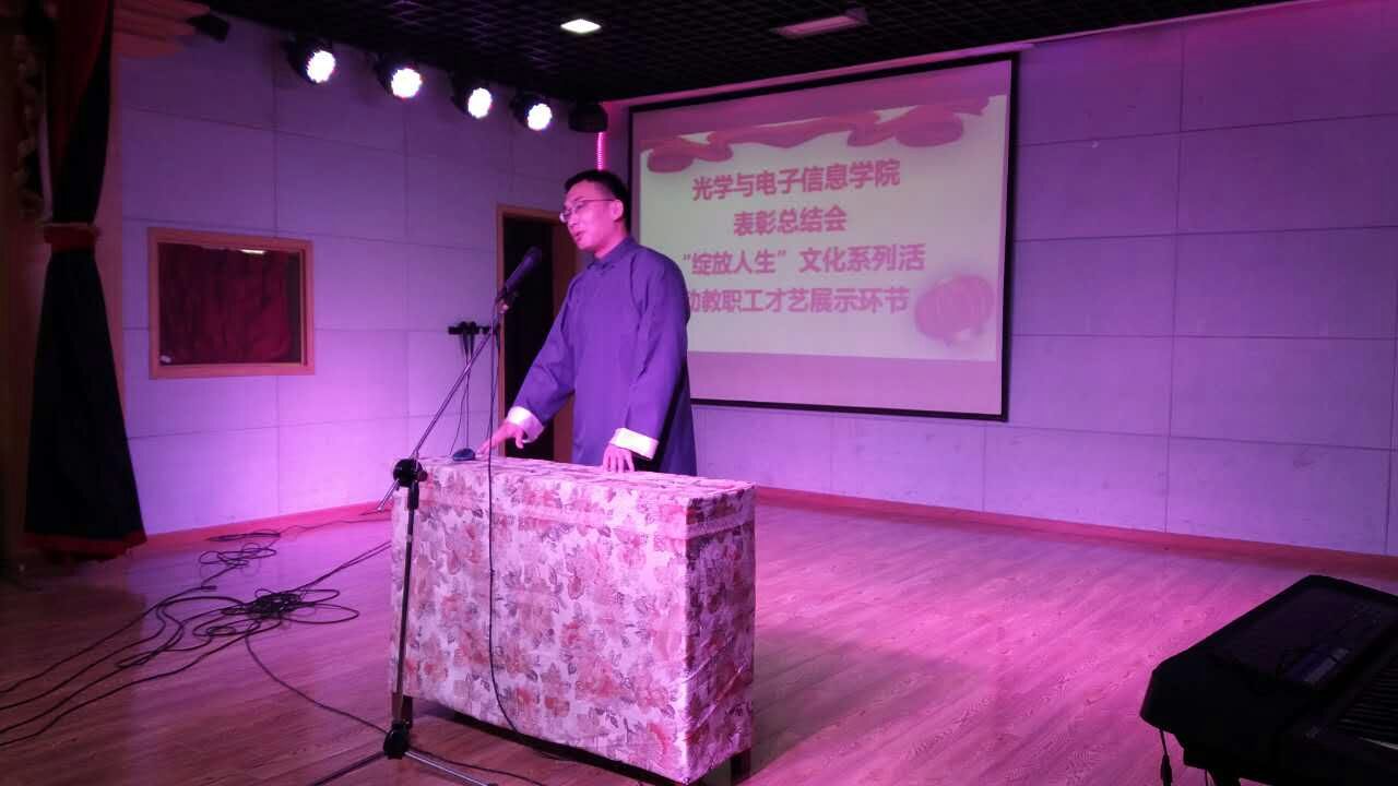 张新亮院长作新年致辞,感谢全体教职员工、退休老教师、学生过去一年对学院发展做出的贡献。才艺展示环节中周果子、熊炫、朱本鹏、刘颖、田莉家庭、雷文家庭、赵茗家庭、薛堪豪、聂彦家庭、瞿生振、周东祥等依次上台为观众带来了精彩生动的表演,单口相声、乐器演奏、独唱、京剧…欢笑声此起彼伏。