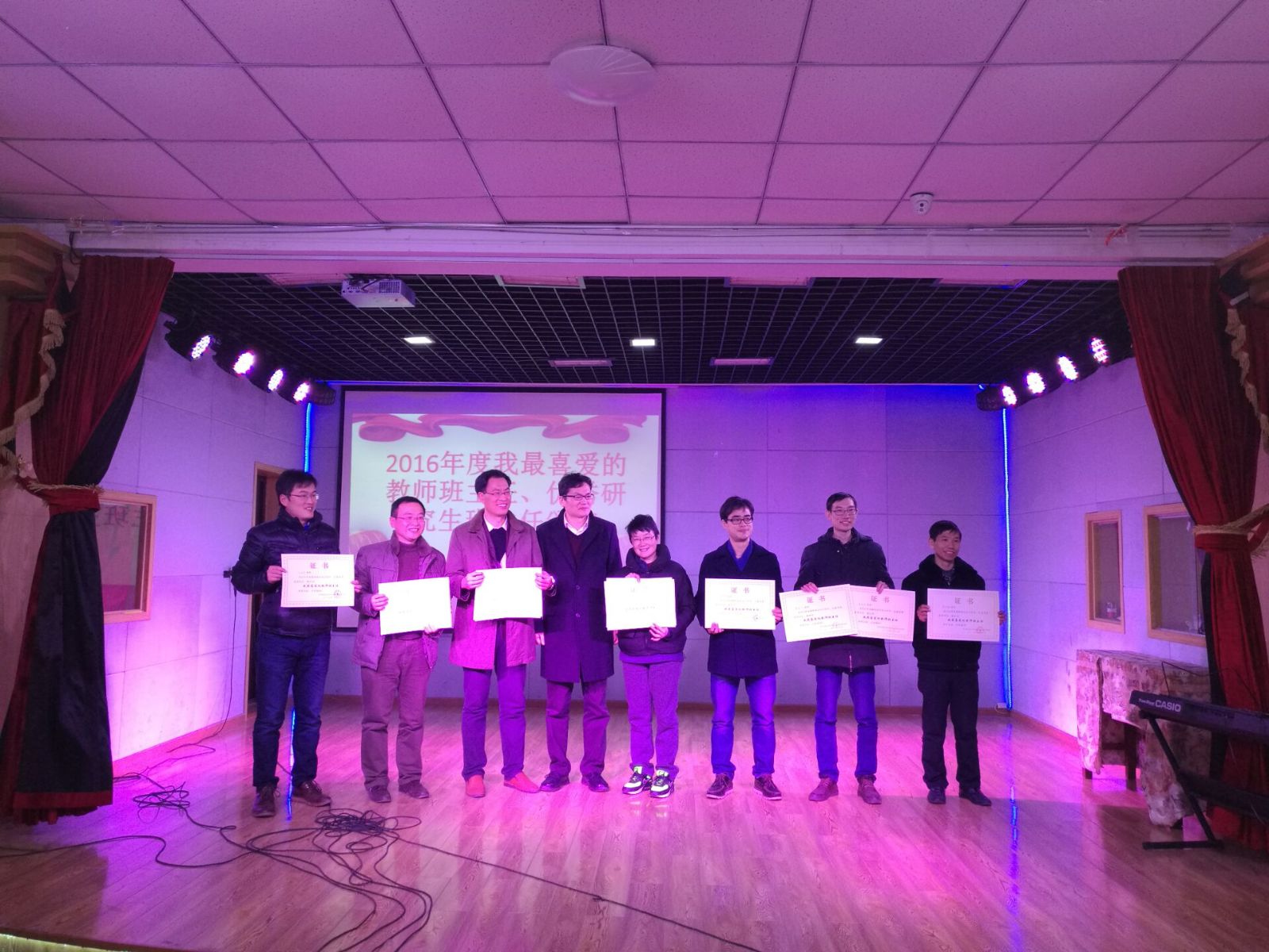 活动进行中,刘继文书记宣读了关于表彰2016年学院突出贡献奖的决定,杨克成副院长、陈世英老师作为一等奖获奖代表发言;李玲副书记宣读了2016年度我最喜爱的教师班主任和优秀班主任表彰决定,王英老师作为获奖代表发言;吕文中副院长宣读2016年度学院十大新闻和十大新闻人物、新闻先进工作者奖项;刘继文、张新亮等院领导为各位获奖代表颁发奖状,学院工会为在职的本命年教师颁发鸡年生肖纪念品。