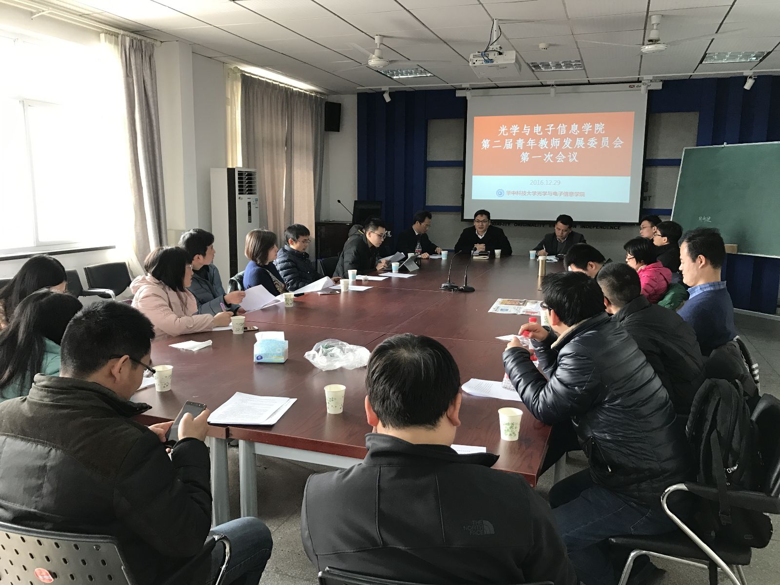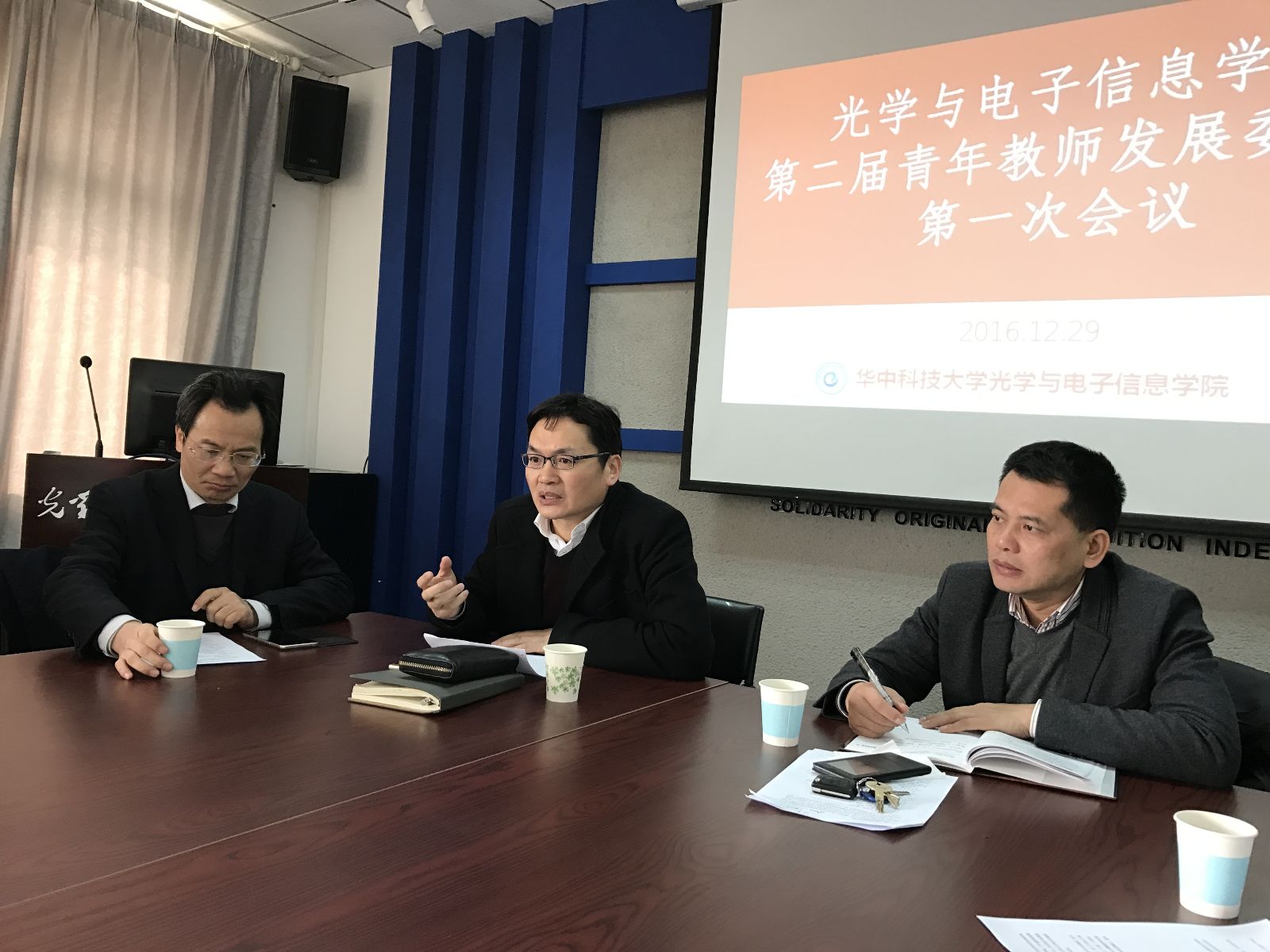 刘继文书记宣读了《关于光电信息学院第二届青年教师发展委员会组成的通知》,委员会主任由费鹏担任,副主任由刘欢、朱本鹏担任。委员分别由每个系所中心的两名青年老师担任,他们是:刘欢、王成亮、臧剑锋(电子科学系);费鹏,易飞,徐竞(光电工程系);何毓辉、刘璐(微电子学系);张兆伟、朱广志(激光技术系);朱本鹏、谭旻、童乔凌(微电子工程系);孙琪真、司马朝坦(光通信与光网络系);王鲜、徐勤芬(微波工程系);田莉、熊炫(机关及实验教学中心)。