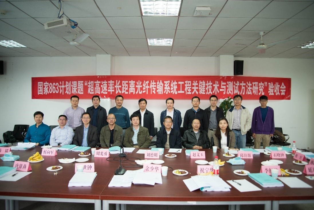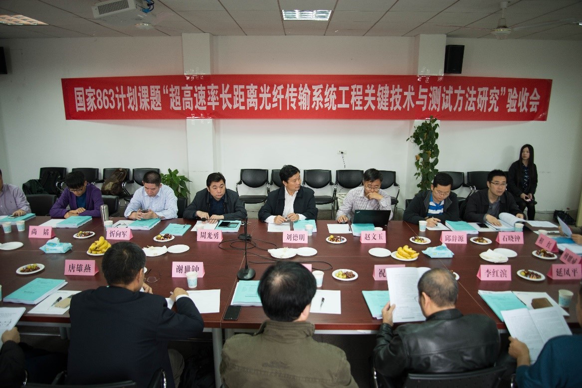 2016年10月22日上午,由我校下一代互联网接入系统国家工程实验室牵头承担的科技部863计划项目“超高速率长距离光纤传输系统工程关键技术与测试方法研究”课题验收会在伟德国际唯一官网入口成功举行。验收会由科技部高技术中心信息处傅耀威副处长主持,验收专家组由武汉邮电科学研究院余少华院士领衔,包括了清华大学谢世钟教授、北京大学李红滨教授、中科院半导体研究所祝宁华研究员、中科院西安光机所谢小平研究员、北京交通大学延凤平教授、以及中国联通网络技术研究院唐雄燕教授级高工等业内知名专家学者。我校下一代互联网接入系统国家工程实验室主任刘德明教授和校科发院重大专项办周光勇主任主持会议。