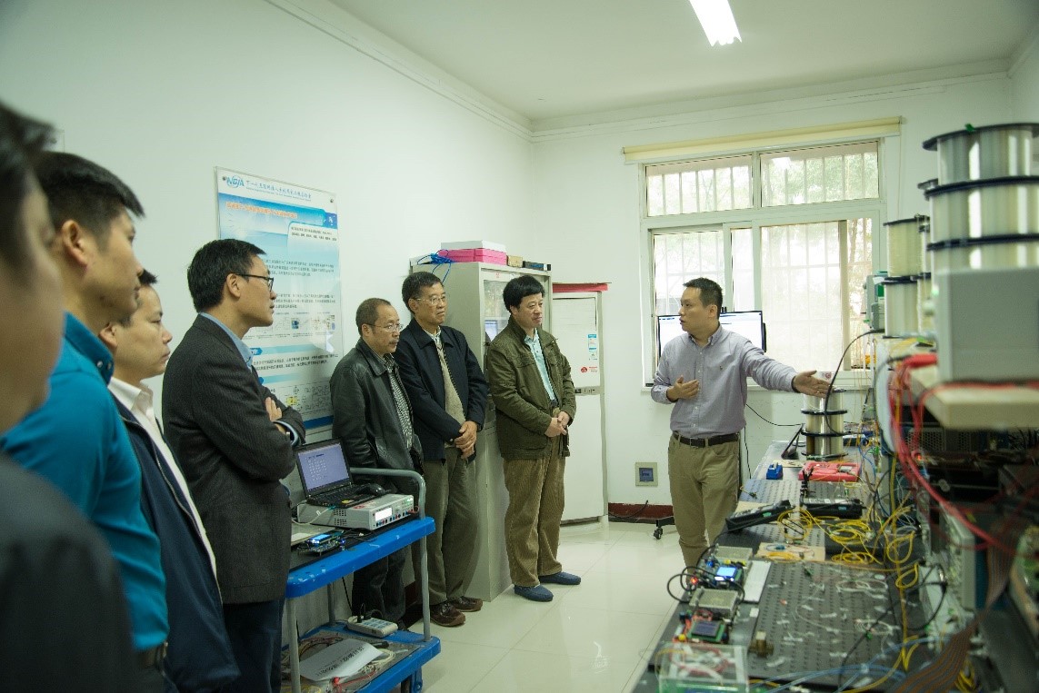与会专家全面听取了课题负责人唐明教授的工作总结汇报,认真审议了项目各课题总结材料,认为课题达到了预期的研究目标,对课题研究工作完成情况和取得的成果给予了高度的肯定和认可,并就研究工作开展情况进行了讨论和交流,提出了一些富有建设性的宝贵意见。经专家组成员独立评审和评分,“超高速率长距离光纤传输系统工程关键技术与测试方法研究”课题顺利通过验收。专家组一致认为,课题组所提出的相干光传输分布式拉曼放大相位与偏振调制方案,光电融合的可编程OSNR监测技术,基于分数阶傅里叶变换的色散估计与时频域同步算法,基于FPGA平台的实时在线验证以及多芯光纤空分复用传输技术有创新性。