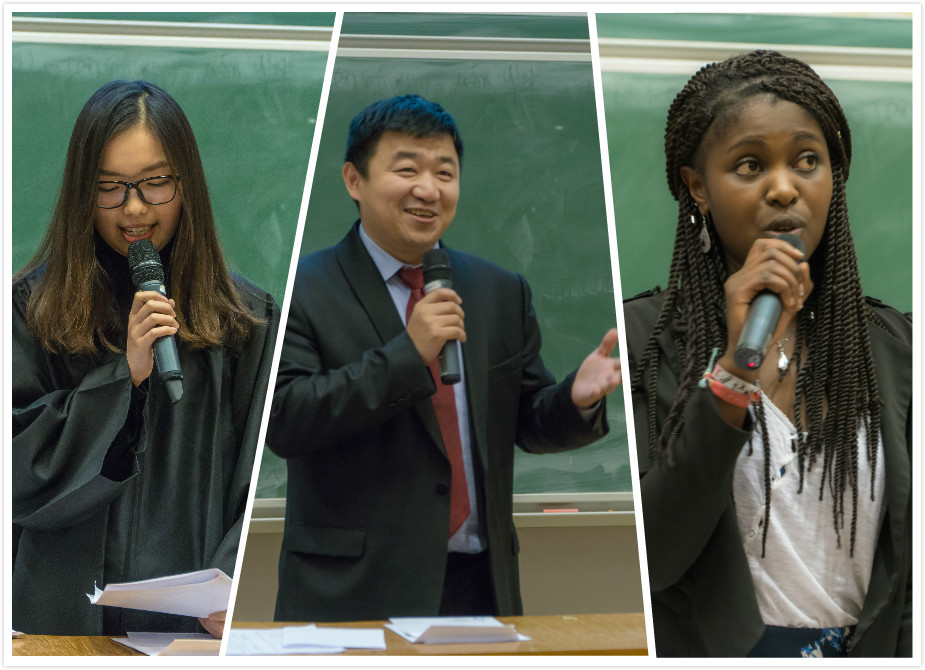 在庄重的中法两国国歌奏乐仪式结束后,华中科技大学国际教育学院张晓东副院长上台致辞。他为校友们带来了来自母校的殷切问候,在讲话中充分肯定了中法教育合作取得的成就。本届毕业生的骄人成绩让前来探望的母校老师深感自豪:肖洋获得IST专业第一,得到了去纳米科学及纳米技术实验室实习的机会,邹航获得IST专业第二。胡越获得了PSO专业第一并获得工程师学院杰出奖学金。李宏宇同学成绩优秀,获得了在icube实验室实习的机会。黄婧雯和张森暑期在巴黎警察局作为翻译实习,张森并作为第一位中国学生在里尔参加Polytech学校联盟第八届社团学生代表大会。丁一凡入选由法国天文台主办的星野摄影大赛。。。最后,他衷心祝愿同学们前程似锦,并对巴黎南十一大学的老师和同学们表示感谢。