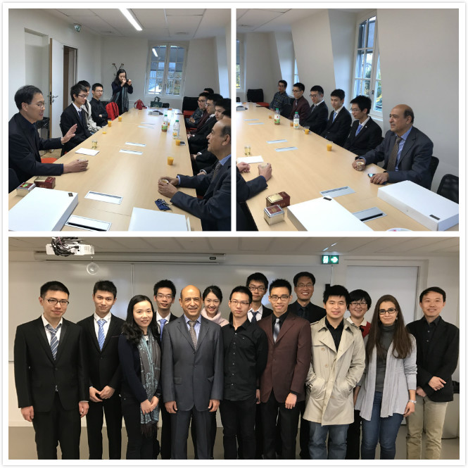 在11月16日上午,华科大代表团也探望了在法国的黎高等电子学院(ISEP)留学的中法班同学并为他们颁发了华中科技大学本科学位证书。巴黎高等电子学院副校长Amara教授、副校长Sylvain教授、巴黎高等电子学院的多位老师以及部分中法班学生参加了座谈会。