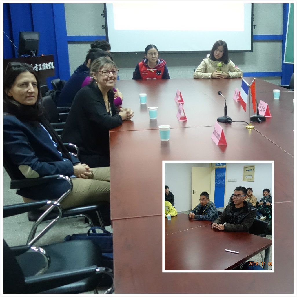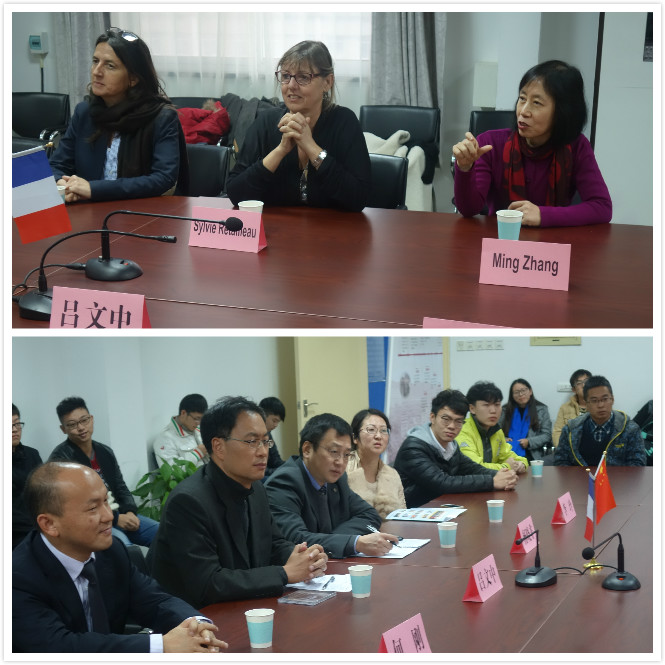 2016年11月9日下午,法国巴黎十一大大学校长Sylvie Retailleau教授及负责国际事务的副校长Sandrine Lacombe教授以及亚洲事务负责人Ming Zhang教授一行到我校访问并到访我院南五楼612会议室举行了见面会。外事处何刚副处长、我院吕文中副校长、杨晓非副院长以及李玲书记会见了外宾。中法班2013级、2014级部分同学参加了见面会。