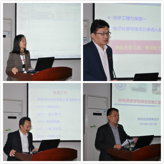 本次“两代会”翻开了我院民主政治生活的新篇章,新的工会组织将建成我院的一个集思广益、凝聚智慧、统一思想的民主平台,实现光电信息学院持续健康和谐发展。