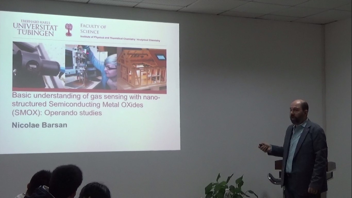 2016年9月21日上午10点整,受我院刘欢副教授邀请,国际嗅觉与化学传感协会(ISOCS)的创始人及其指导委员会成员、德国图宾根大学(University of Tuebingen)物理与理论化学研究所高级研究员Nicolae Barsan博士在南五楼606会议室开展了题为“纳米结构半导体金属氧化物气体传感技术(Basic understanding of gas sensing with nano-structured Semiconducting Metal Oxides)”的学术讲座,