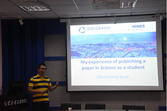 2016年9月13日上午,受我院雷文副教授邀请,美国科罗拉多矿业大学(Colorado School of Mines)材料科学专业博士生段传成在南五楼612学术报告厅做了题为“Low-Cost Intermediate-Temperature Fuel-Flexible Protonic Ceramic Fuel Cells & My Experience of Publishing a Paper inScienceas a Student”的学术报告,交流了质子陶瓷燃料电池的研究进展,并分享了自己在Science发表论文的经验体会。