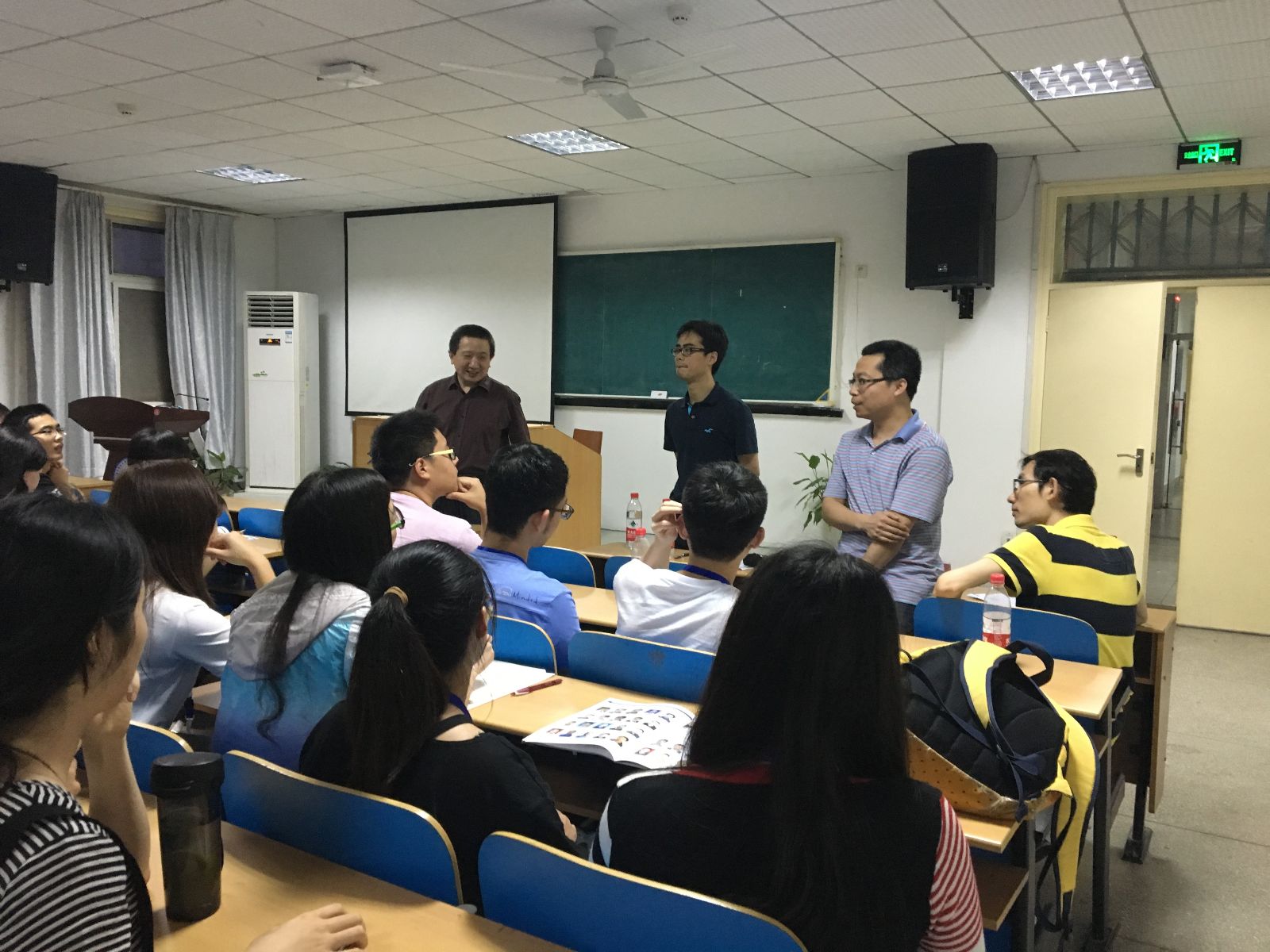 经过了下午的信息传播,营员们有所选择的选定了自己的意向导师与科研团队,晚上我们又为他们准备了另一个火热的导师学生面对面交流会,会议上按照不同的研究领域我们设立了不同的分会场,在会场上学生们和导师们之间的你问我答,使得现场气氛格外火热,虽然白天东奔西走,累了一天,但是晚上学生们的激情不减,老师的热情犹在,会议过后由于大雨滂沱,我们的江院长、唐主席心疼学生,亲自带队送我们的学生回公寓,还有周文利老师和徐勤芬老师。一天的会议报告在大雨中圆满结束,大雨阻挡不了营员们的热情,却展示了我科光电教师对学生的热情关怀。