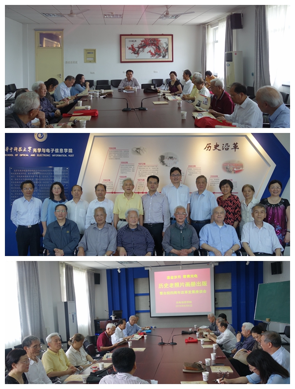 据学院负责人刘继文、张新亮介绍,学院开展老照片画册编辑工作,旨在传承和弘扬老一辈教职工艰苦奋斗、开拓创新的学院文化,教育和激励学院教职工及青年学生追求卓越,团结师生员工努力继续深化改革,推动发展,努力打造“教在光电”“学在光电”两大教育品牌。唐霞辉教授借用毛泽东主席的话评价说,编辑历史老照片画册重在“发扬革命传统,争取更大胜利。”学院计划,继续开展老照片征集工作,进一步挖掘史料资源,争取适时出版第二缉。