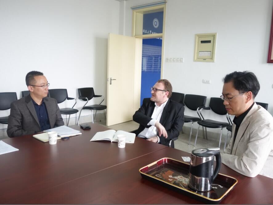 2016年4月14日,法国国立高等光学学院(IOGS,Institut d'optique théorique et appliquée)Gaetan Messin 教授来访我院,深入交流双方合作办学事宜。我院副院长吕文中、柯昌剑教授在南五楼612会客室热情接见了来宾。