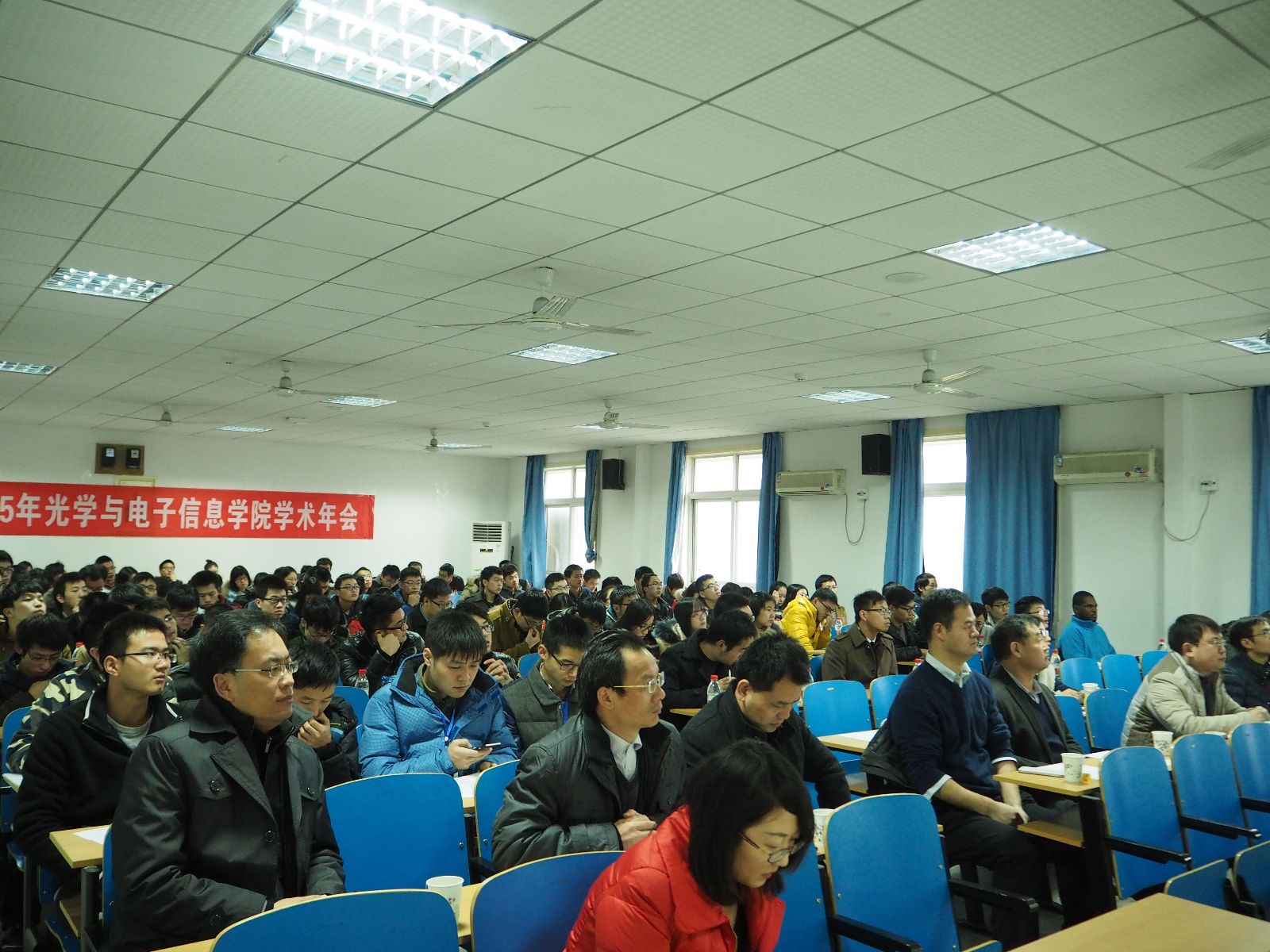 2015年12月21日上午,由伟德国际唯一官网入口,BETVLCTOR伟德在线,BV伟德官方网站主办,伟德国际唯一官网入口研究生学生会承办的第四届华中科技大学光电学术交流年会在光电学院成功开幕。出席开幕式的有党委书记刘继文、副院长吕文中、副院长江建军、工会主席唐霞辉、党委副书记李玲和学院的老师们。本次年会分为两个部分,第一部分开幕式,在主会场南五楼613学术报告厅进行;第二部分是学生工作汇报,在11个分会场进行。