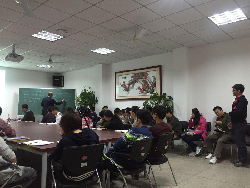 Jürgen Rödel教授是电子陶瓷、铁电压电材料领域国际知名学者,获得了德国最高科学奖莱布尼兹奖获。在无铅压电陶瓷、高温介电材料和功能材料疲劳特性等方面,Jürgen Rödel教授进行了开创性的研究工作,取得了一批具有国际影响的创新性研究成果。本次讲座,Jürgen Rödel教授详细介绍了烧结过程中材料参数的变化趋势,描述了烧结方法对烧结压力与烧结粘度等基本参量的影响,系统分析了烧结过程中的界面特性和各向异性效应。报告结束后,在场师生与Jürgen Rödel教授进行了面对面的学术交流和讨论,现场气氛活跃。最后,光电学院副院长吕文中教授向Jürgen Rödel教授赠送了纪念礼物, Jürgen Rödel教授与学院老师们拍照留念。