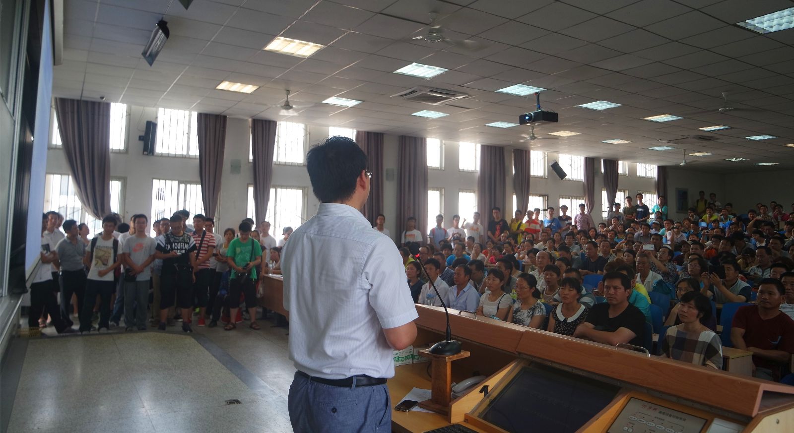 7日上午8点,在东十二教学楼F102、F202由杨晓非院长分两场为光电学院全体2015级本科新生进行了学生入学的专业教育。杨院长从学院的各种基本情况、科研实力和水平等进行了介绍,同时对于以学分制为核心的大学选课制度进行了介绍,最后以猎豹猎取羚羊和现代导弹系统的视频为例,跟同学们做了大学阶段几点建议的分享。杨院长渊博的学识和优雅的气质风度折服了很多在场的新生,生动深刻的例子及宣讲引人入胜,同学们不时爆发出会心的微笑和热烈的掌声。