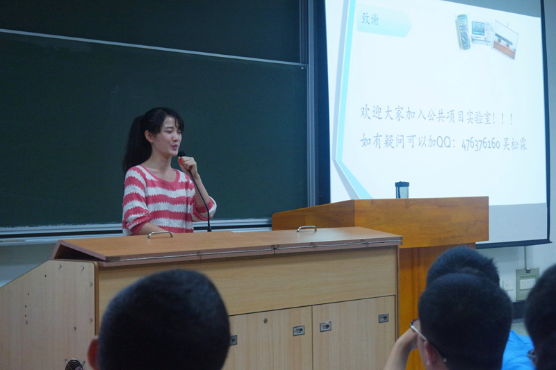 学院大学生公共项目实验室宋璐瑶同学在做宣讲