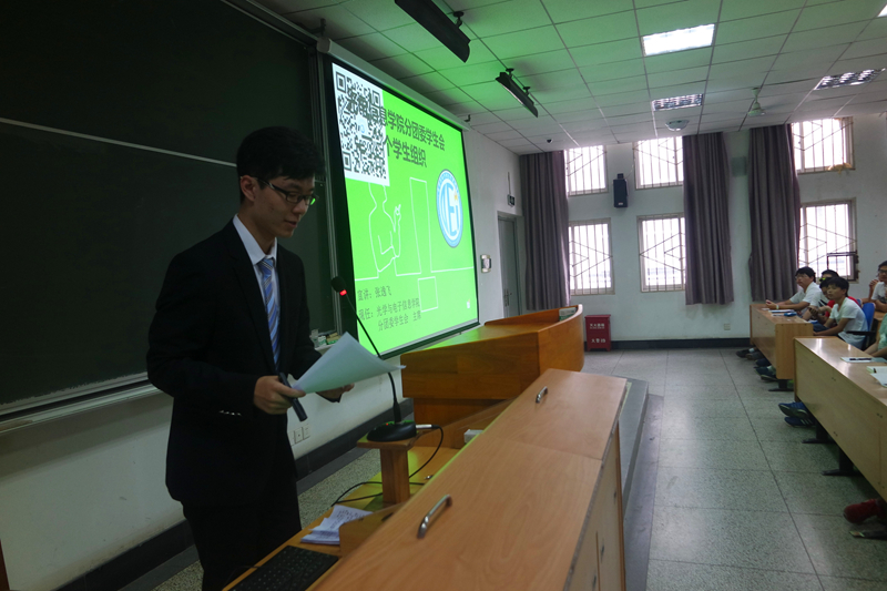 5日上午8点,于东十二教学楼F201、F202由学院各学院两大学生科技创新团队负责人及特邀的大学生科技创新达人给新生们就大学生科技创新进行了介绍分享。计算材料科学与测量模拟中心(CCMS)团队的张宝博士,学院大学生公共项目实验室管委会副主任吴松霖、联络专委宋璐瑶分别就学院两大本科生科技创新组织的平台建设、组织架构、研究内容和所取得的成果进行了介绍。同时还特意邀请了电子科学与技术2010级毕业生,在大学阶段屡获科技创新大奖的苏豪学长给大家分享了他做全国电脑鼠走迷宫竞赛、全国大学生电子设计竞赛、全国智能机器人大赛的项目经验与心路历程,并同时介绍了学校的电工电子科技创新中心、数学建模科技创新基地等组织概况。通过专家讲座,极大了扩充了同学们的视野,让大家更加的了解大学生活的丰富多彩,告诉大家有足够多的选择给自己,只要坚持并努力,一定会在某个方向发现自己的兴趣和特长的结合点,坚持并取得成功。