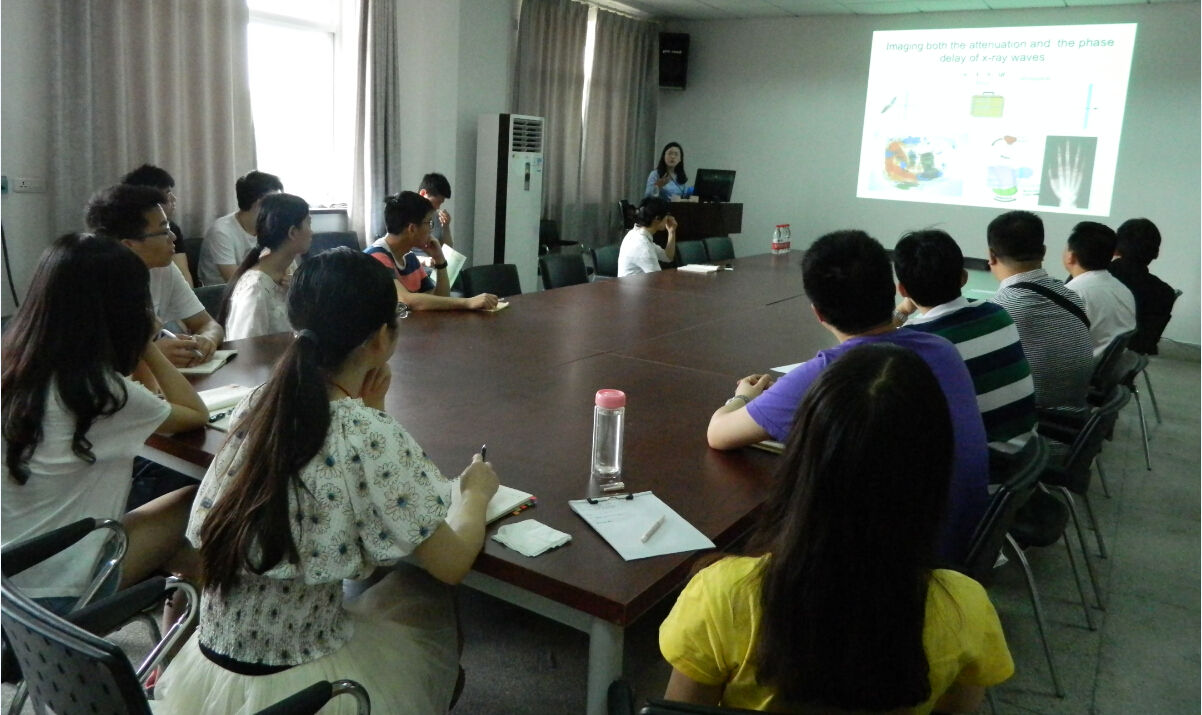 朱芸慧博士毕业于北京大学物理学院,后赴美留学获得杜克大学物理学院博士学位,2013年起在麻省理工学院机械工程系3D光学系统项目组从事博士后研究,研究方向涵盖X射线成像、信息光子学、量子光学和非线性光纤光学等领域,先后完成了低噪声TIE相位成像、量子光学系统、自由空间量子通信等一系列重要科研项目。报告会上,朱博士深入浅出的介绍了基于TIE的相位成像技术以及结构照明(structured illumination)在TIE相位成像中的应用。随后,朱博士与我院师生代表进行了热烈深刻的讨论,提供了非常好的研究思路和研究方法。