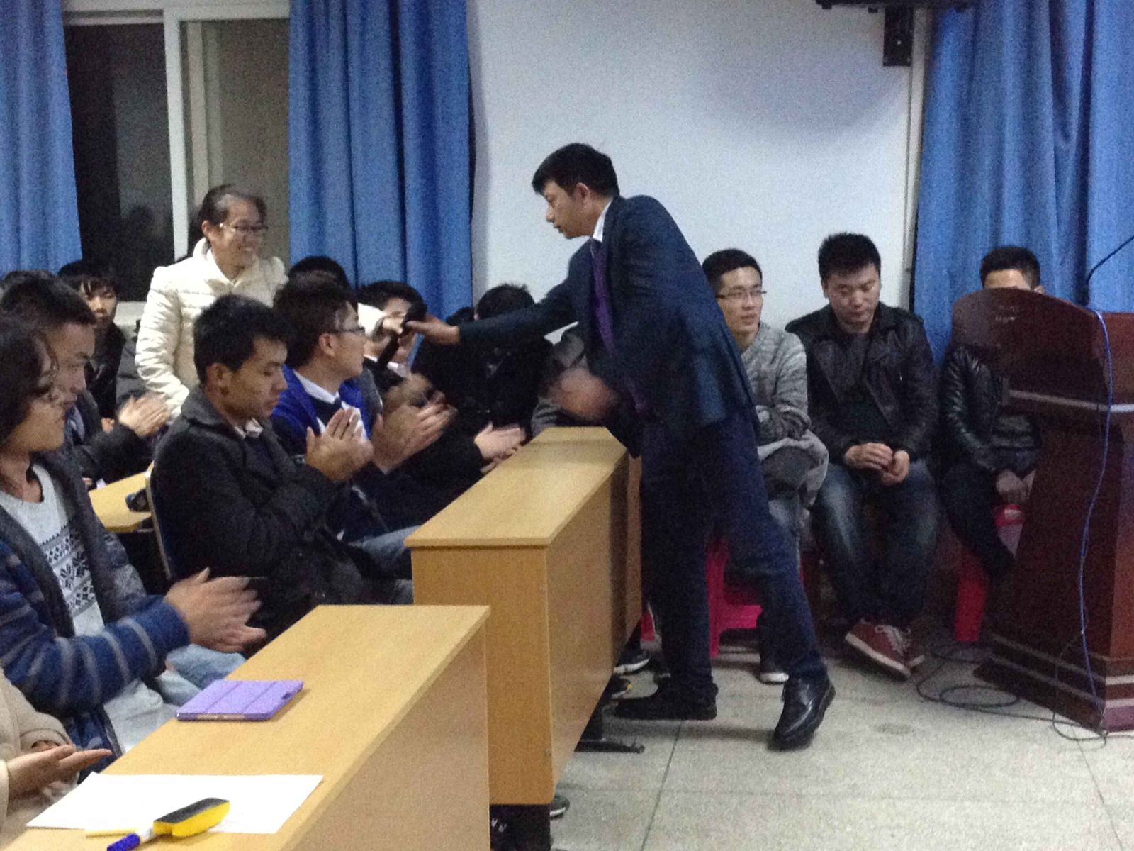 接下来廖老师重点介绍了面试时应该注意的一些问题。紧接着的就是本场活动的重点环节,廖老师与三位同学进行现场面试模拟,并同时针对同学们表现出来的问题进行讲解。在模拟面试的过程中,廖老师尽量使面试更加接近于实际情况,同学们也积极配合保持安静。在面试完每一位同学以后,廖老师都会对面试过程中的每个环节进行深度解剖,并详细讲解了HR所提问题的目的以及对面试者的回答进行了详细点评。这些问题都是同学们平时在找工作时会遇到的问题,所以同学们都感触颇深。