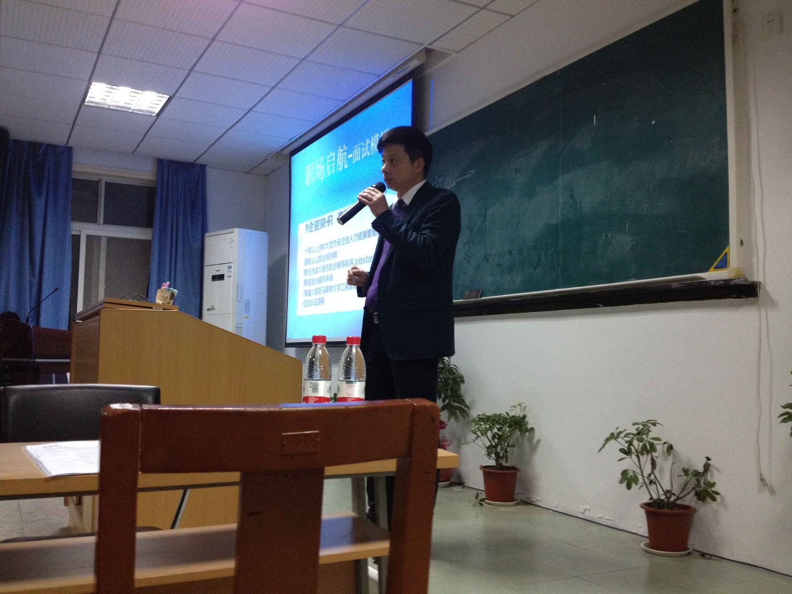 首先,廖老师为学生们讲解了寻找工作的一般流程以及在这个过程中应该注意的一些问题。在讲解的过程中,廖老师与同学们积极互动,不时向同学们提出问题,同学们也积极响应,现场气氛活跃。