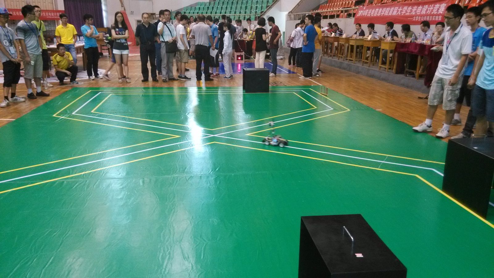 上午9点,比赛正式开始,比赛分为两个环节,第一环节为作品演示与裁判现场测量;第二环节为方案答辩。首先,由各参赛队伍依次在专用比赛场地上演示参赛作品,并由裁判按照竞赛规则现场测量计算后给出作品竞赛分。随后,各参赛队伍上台向评委介绍作品的外观特点、结构组成参数、关键单元器件设计、代码编写、稳定性可靠性及性价比等关键的技术指标,回答评委提问并由评委点评后给出作品方案分。