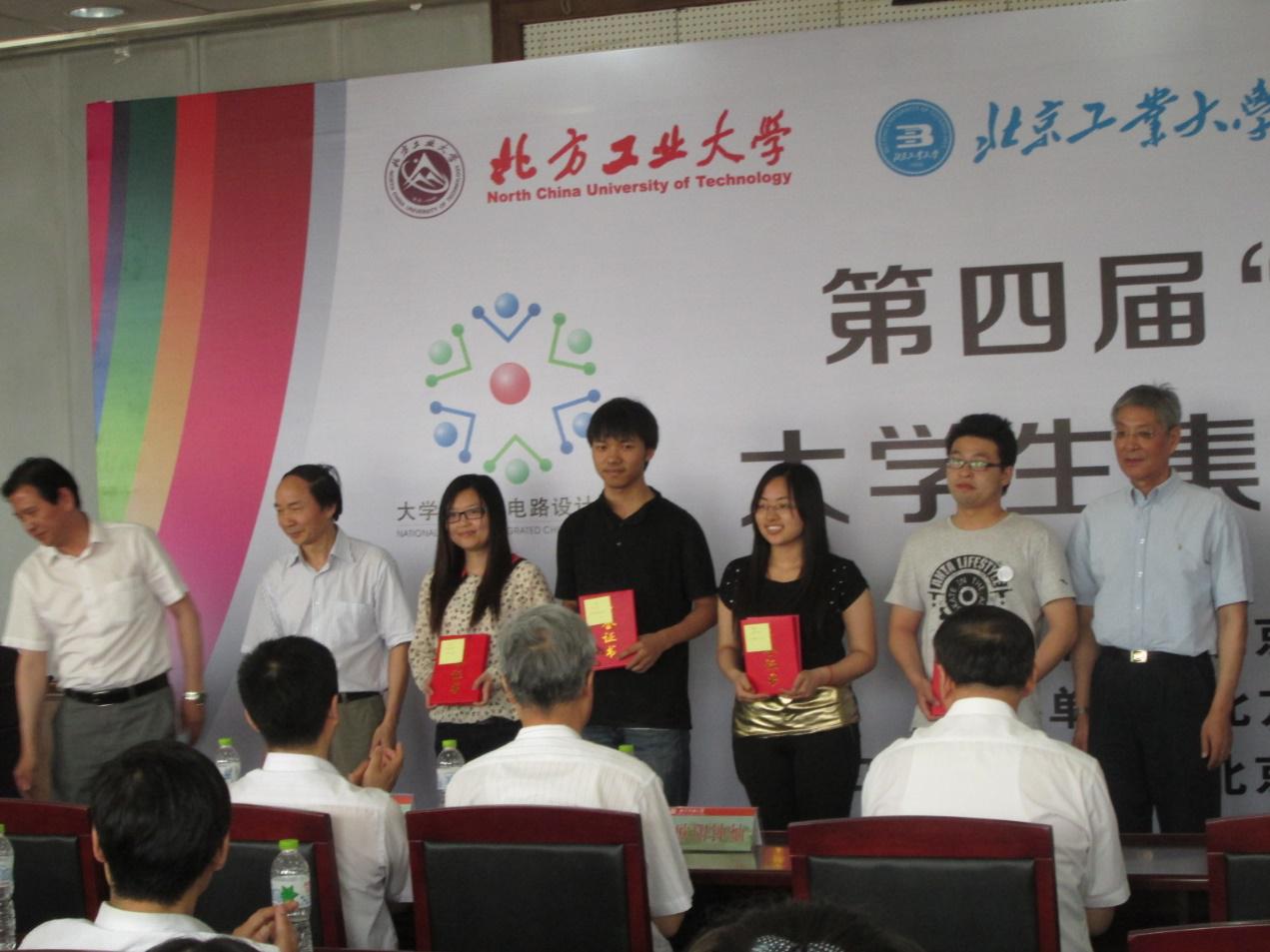 2014年5月31日上午,第四届“大学生集成电路设计大赛”在北方工业大学颁奖落幕。我院学子斩获大赛一等奖和二等奖各一项,邓中洋、吴泽亮代表获奖队伍参加了颁奖仪式。