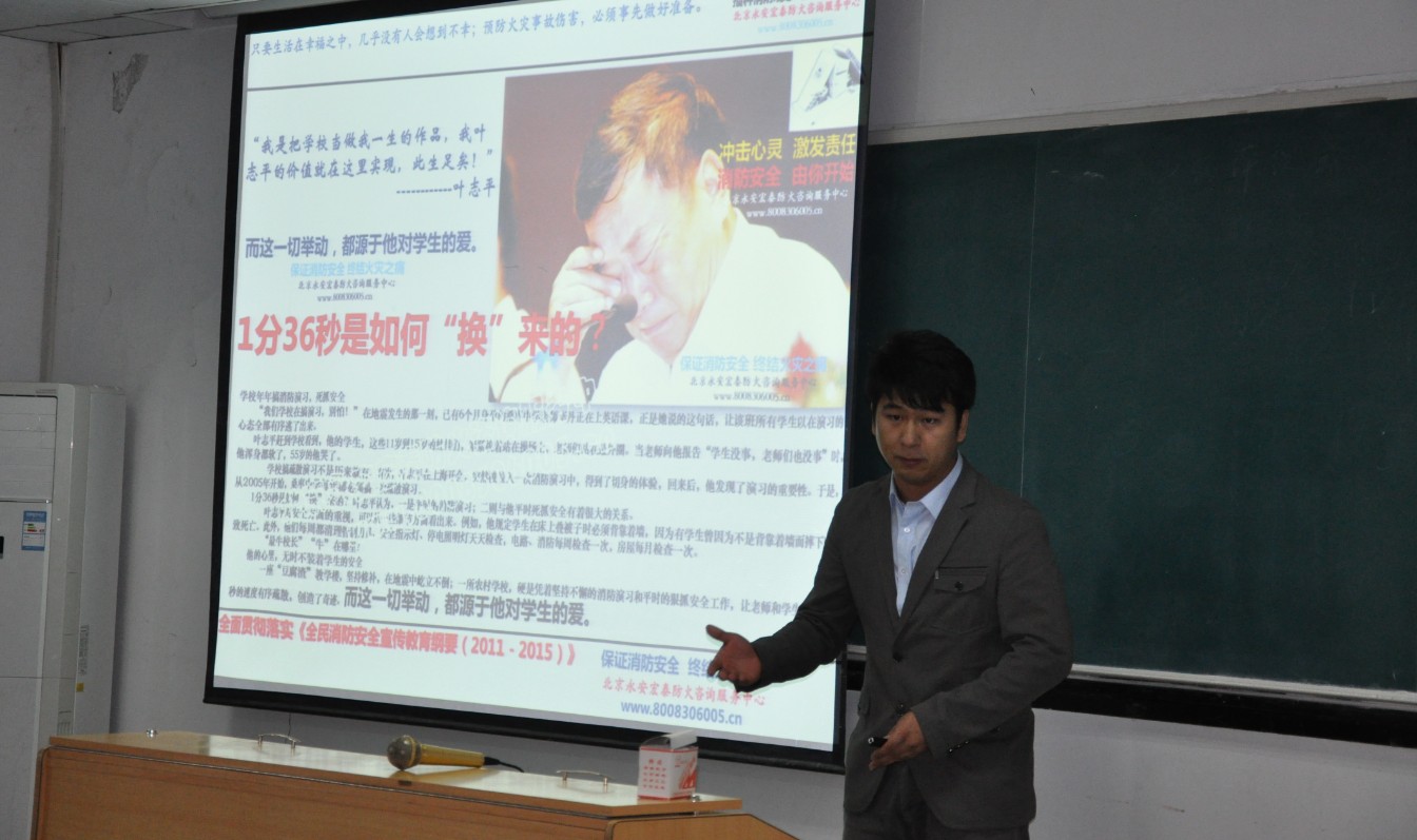 知识普及环节中,何老师列举了发生在全国各大高校的火灾案例,触目惊心的火灾现场照片让师生们深感消防安全的重要性。随后,何老师给大家讲解了火灾现场逃生的注意事项和要点,告诫同学们遇到火险,一定要保持镇静并迅速往安全通道撤离,为了防止火场浓烟呛入,可采用消防防毒面罩等防护,要学会利用身边的消防水带等工具进行自救。
