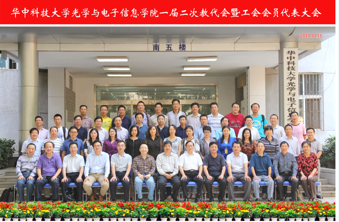 10月13日,光电信息学院第一届二次教职工代表大会暨工会会员代表大会(简称“两代会”)在南五楼学术报告厅隆重召开。校工会主席王海生,校工会常务副主席袁建春、校工会副主席张道礼等领导和嘉宾出席会议。参加本次会议的正式代表应到37名,实到34名,列席代表12名,特邀代表5名。全体与会代表在南五楼门前合影留念。