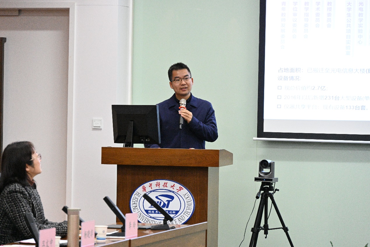 党委书记张涛汇报了学院在大学院体制机制建设、协同育人、教师考核评价等方面的工作,特别汇报了我院中外合作办学有关进展。集成电路学院院长、光电信息学院副院长缪向水汇报了电子学科的发展现状以及未来规划。下一代互联网接入系统国家工程实验室主任刘德明汇报了工程实验室的基本情况和近期发展。唐霞辉教授汇报了激光加工国家工程研究中心的相关工作。青年教师费鹏对学院高层次人才引进、科研用房提出了建议。
