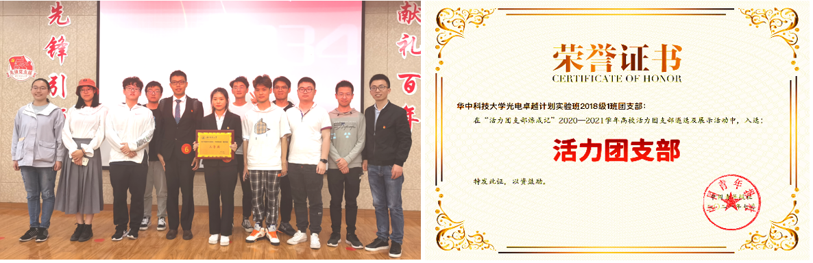 据悉,自2021年党史学习教育工作启动以来,本科生光实光卓联合党支部多措并举,扎实推进党史学习。同时,该支部聚焦所联系指导的班级同学所想、所需、所求,充分发挥纵向党支部“传帮带”的优势,通过价值引领、学业指导和成长导航等方式,实现了以组织育人促学业、促科研、促发展的良好局面。该支部联系指导的光卓1801班团支部成功获评“全国活力团支部”,该支部在2021年也成功获评华中科技大学“先锋党支部”,形成了支部带班级、党建带领团建一同追求卓越的良好氛围。