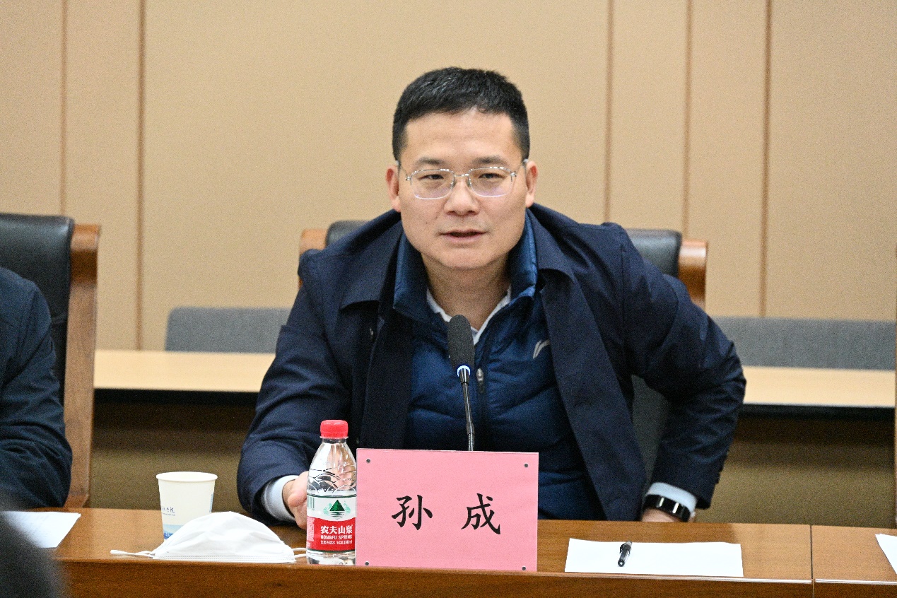 珠海市香洲区区委常委、副区长孙成发言,希望和学院开展合作,共同孵化项目,实现双方共赢。